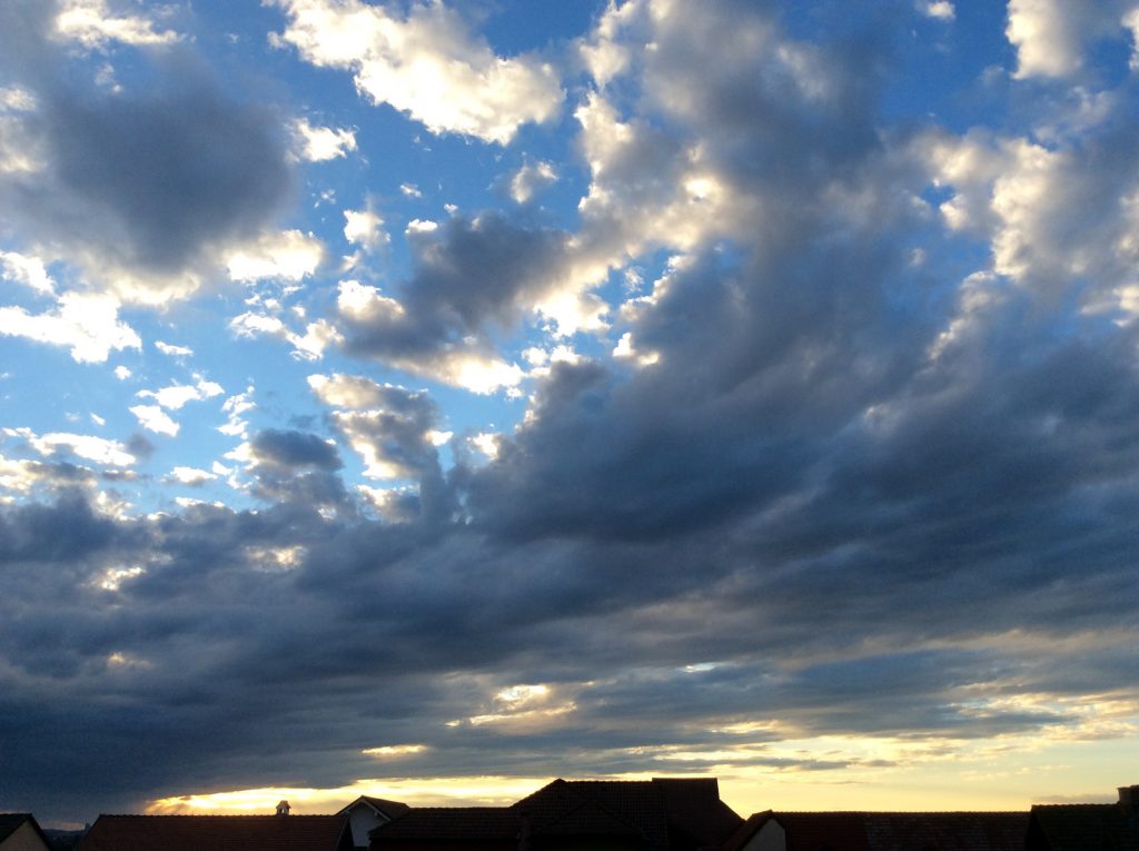 Un exercițiu de imaginație cu rădăcini în copilărie când toți copiii din fața blocului căscau ochii la norii pufoși făcând concurs de ghicit forme. A rămas mai mult exercițiul. Pentru ochi și pentru suflet. Există, totuși, un concurs pentru care sunt un simplu privitor; văzduhul de azi la întrecere cu cel de ieri. Un fel de concurs de frumusețe care te ține cu picioarele pe pământ dar cu capul în nori. Așa înveți că în fiecare zi ai ceva nou de admirat, de apreciat sau de așteptat.